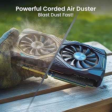- Easy-To-Use Air Blower With Extra Long Cord: This air blower for electronics features an extra-long 12-foot cord, making it easy to clean without constantly switching outlets. Whether you’re using it as a keyboard duster or a pc air duster, the long cord allows you to clean multiple devices effortlessly. The air duster for pc design, combined with its flexible cord, ensures quick and easy cleaning in every corner.