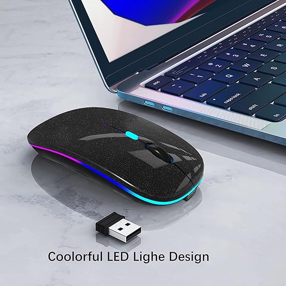 Wireless Bluetooth Mouse Rechargeable Laptop Mice with LED Lights Silent Slim Use(BT5.2 and 2.4G